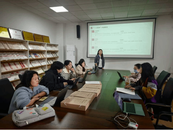 田爱玲老师作开场动员与会议总结,她详细听取期末考核改革方案设计与课程题库构建进展,对前期工作给予肯定,并对后续重点任务作出部署:一是完善学习通线上学习思维导图模块,优化线上学习资源;二是持续推进教学案例库建设,丰富教学素材;三是将红军长征胜利90周年相关内容融入下次备课会,与唯物史观深度结合,深化红色教育与思政教学融合。